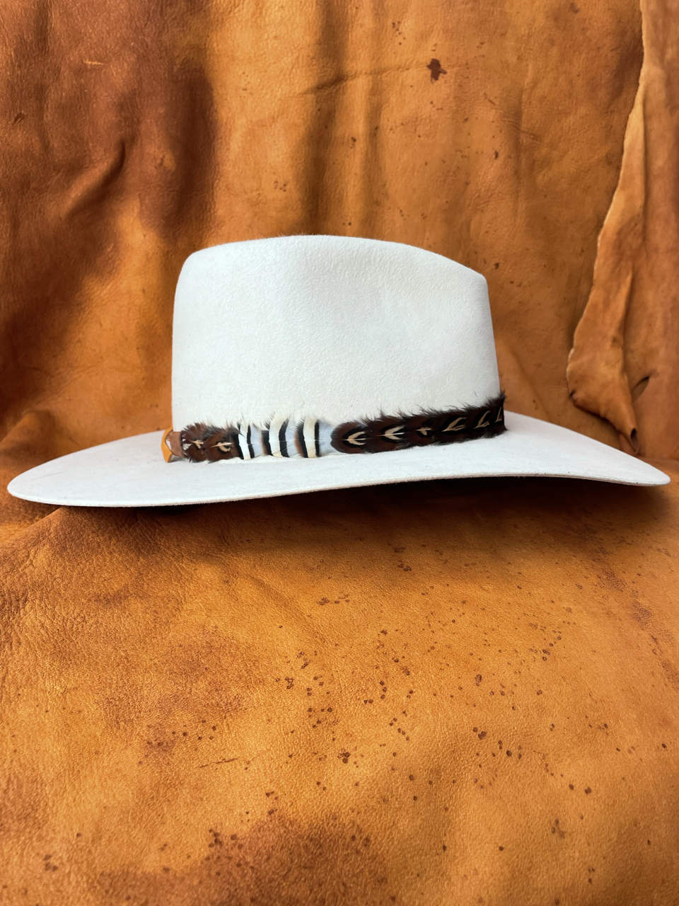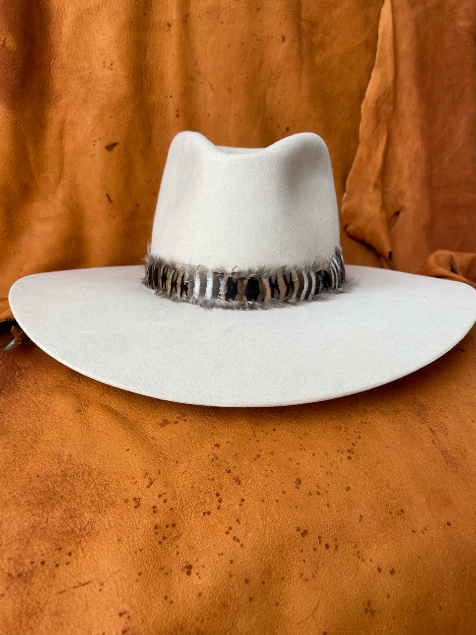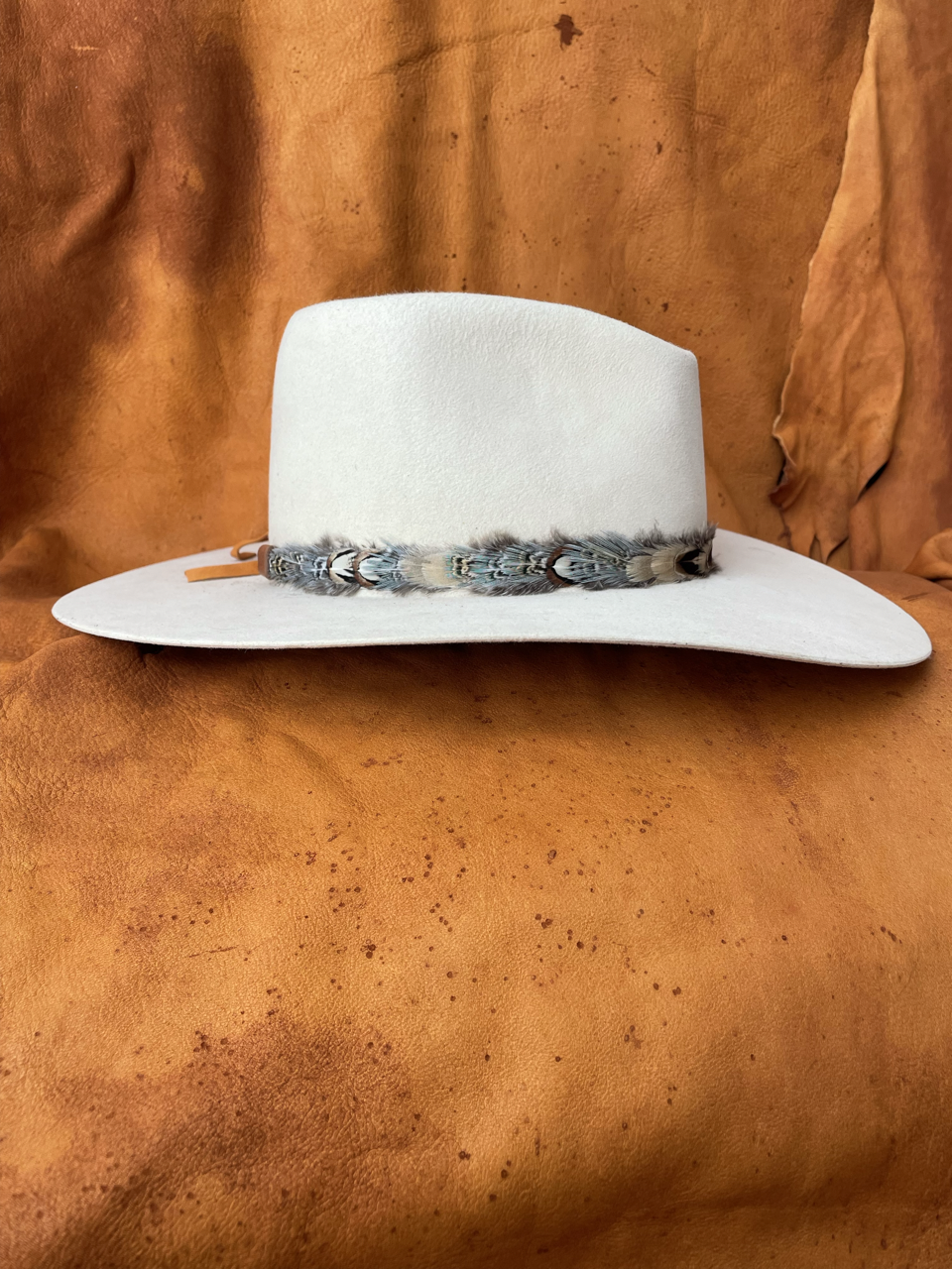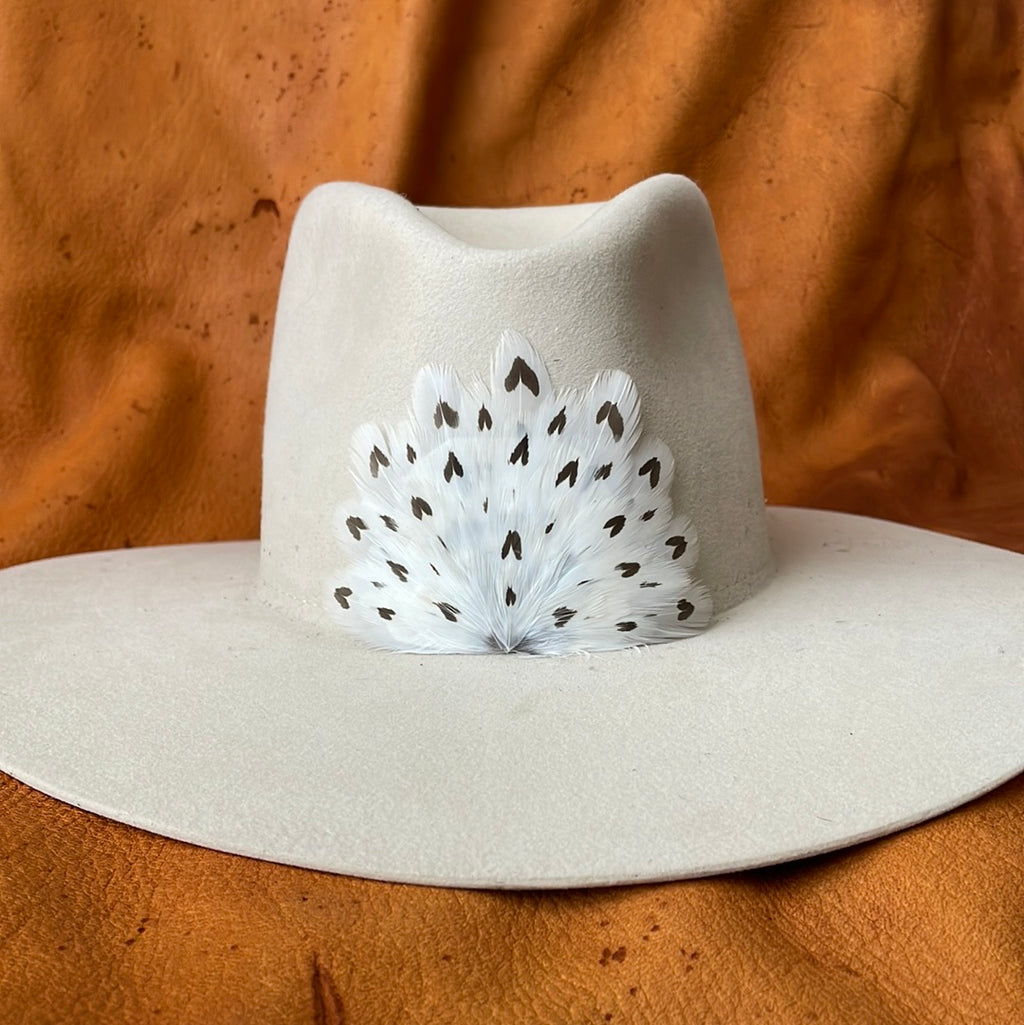 Each hatband and medallion begins as a simple feather, then becomes a one-of-a-kind statement piece. Handcrafted with intention, designed to make your style unforgettable.