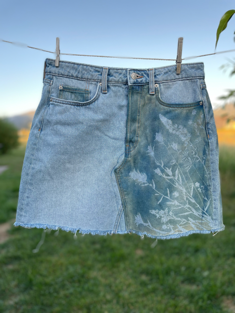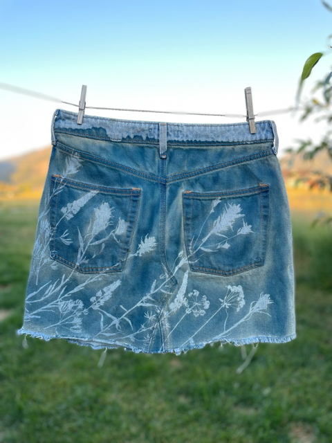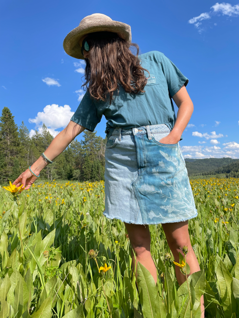 Secondhand fashion, redesigned using solar photography and beautiful wildflowers of Wyoming. This garment is one of a kind, upcycled, and sustainable.