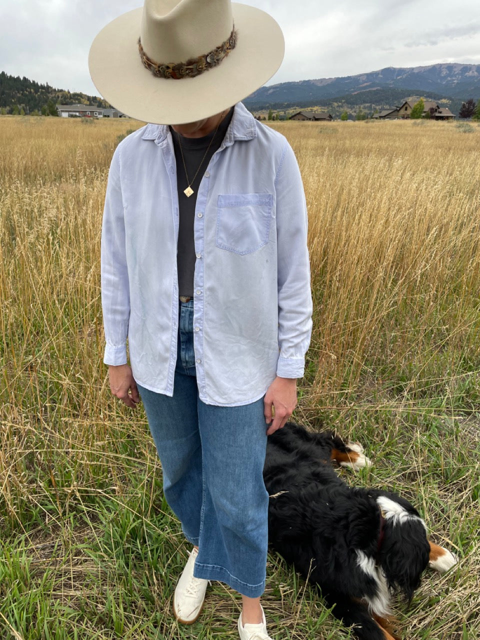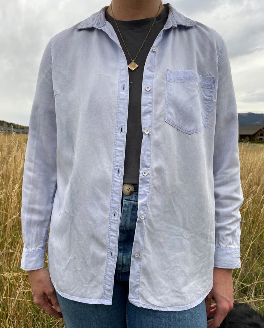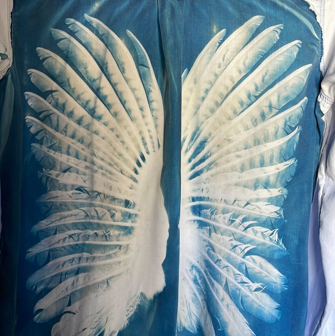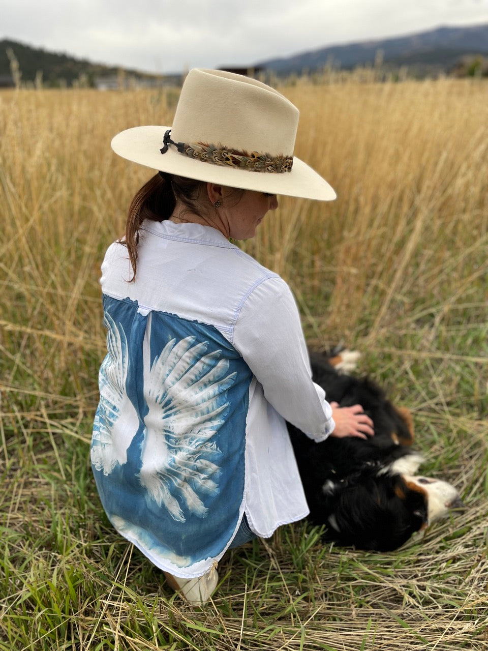 Secondhand fashion, redesigned using solar photography and beautiful wings of Wyoming. This garment is one of a kind, upcycled, and sustainable.