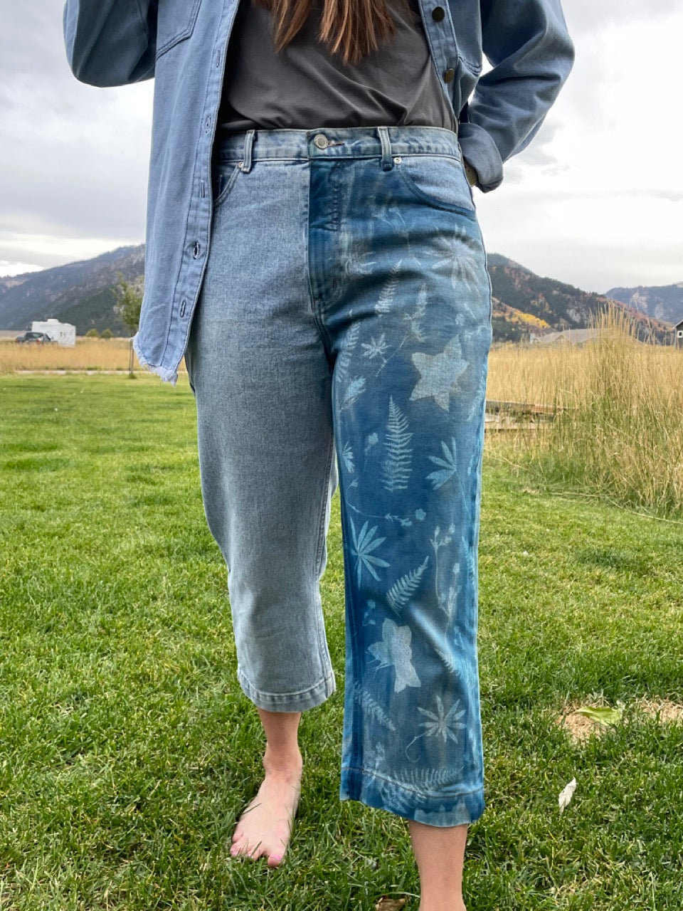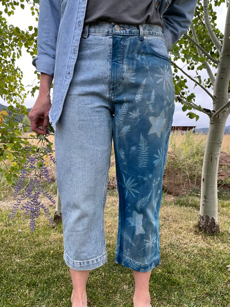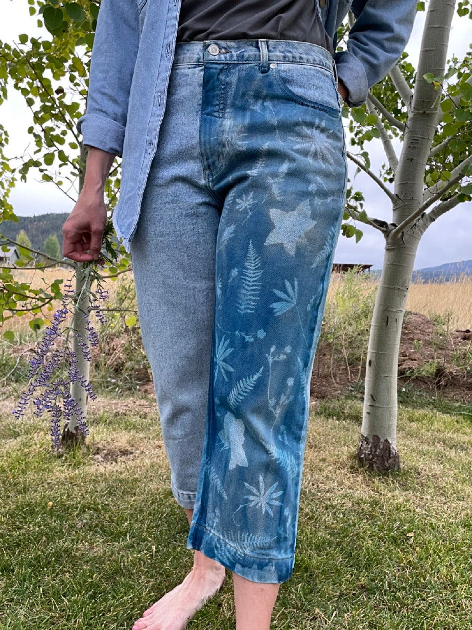 Secondhand fashion, redesigned using solar photography and beautiful flowers of Wyoming. This garment is one of a kind, upcycled, and sustainable.
